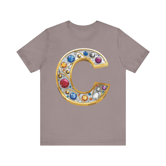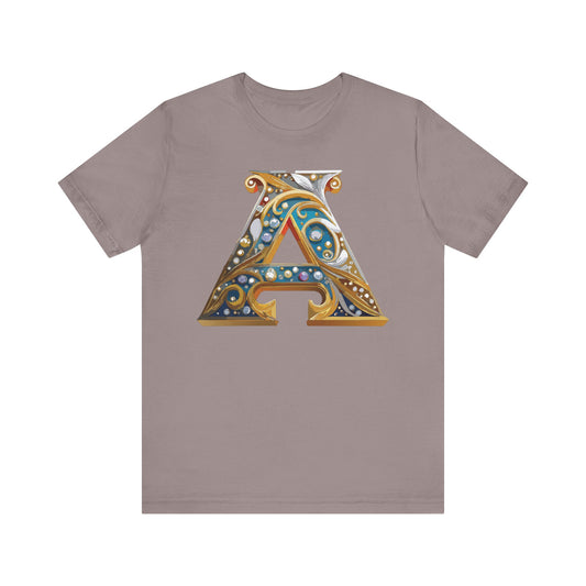 Letter Shirt, Shirt with Letters, Tee Shirt with Gold Letter, Shirt with Antique Letters